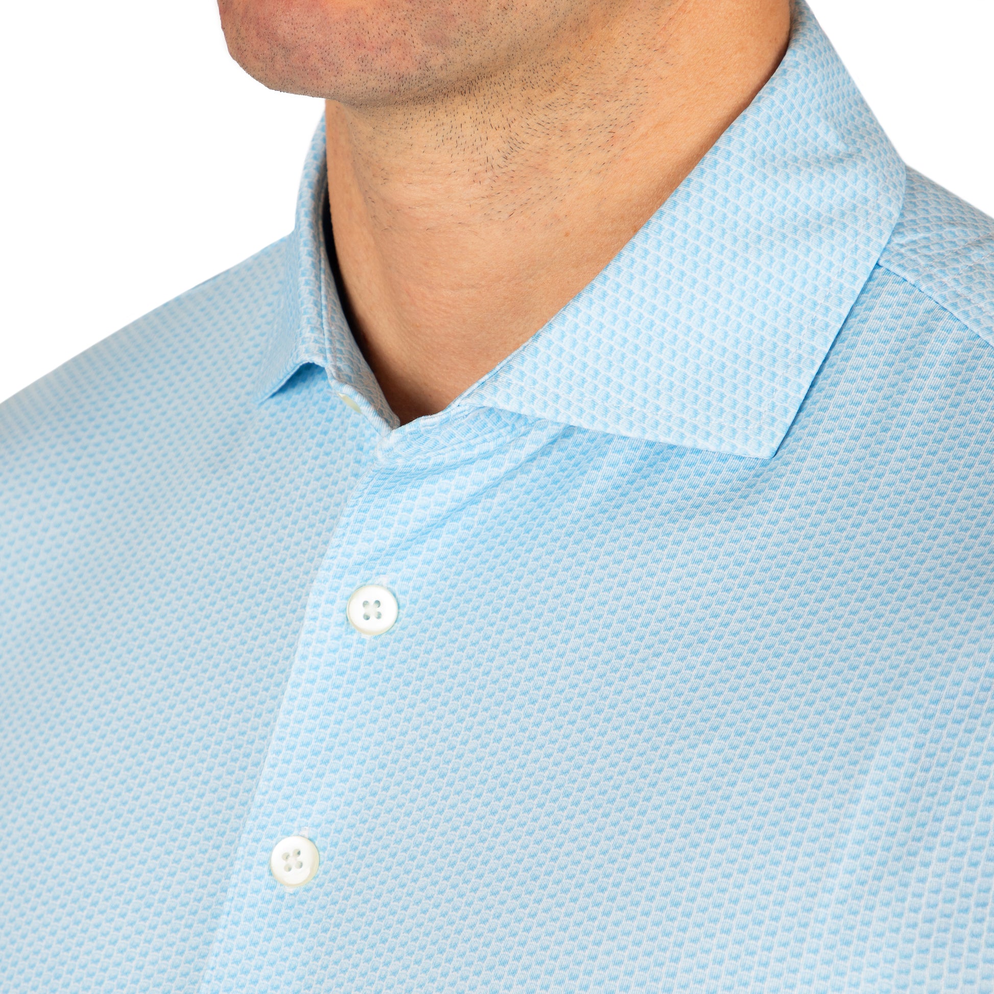 Our whiskey barrel designed golf shirt, is distinguished by its unique cutaway collar. Crafted with a four-way stretch fabric, this shirt not only showcases a stylish design but also ensures optimal flexibility and comfort for your golfing experience.