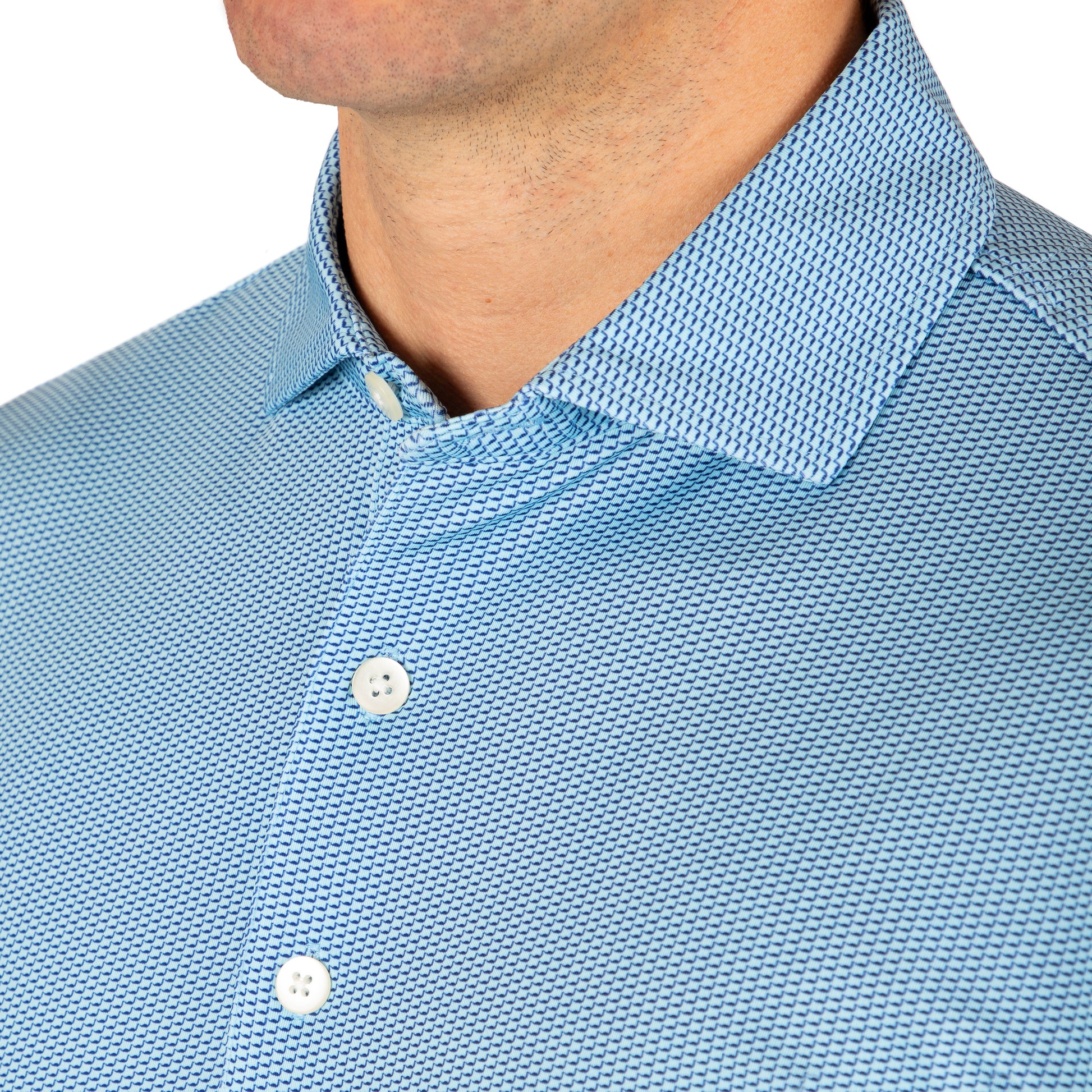 Our loch ness monster printed golf shirt is distinguished by its unique cutaway collar. Crafted with a four-way stretch fabric, this shirt not only showcases a stylish design but also ensures optimal flexibility and comfort for your golfing experience.